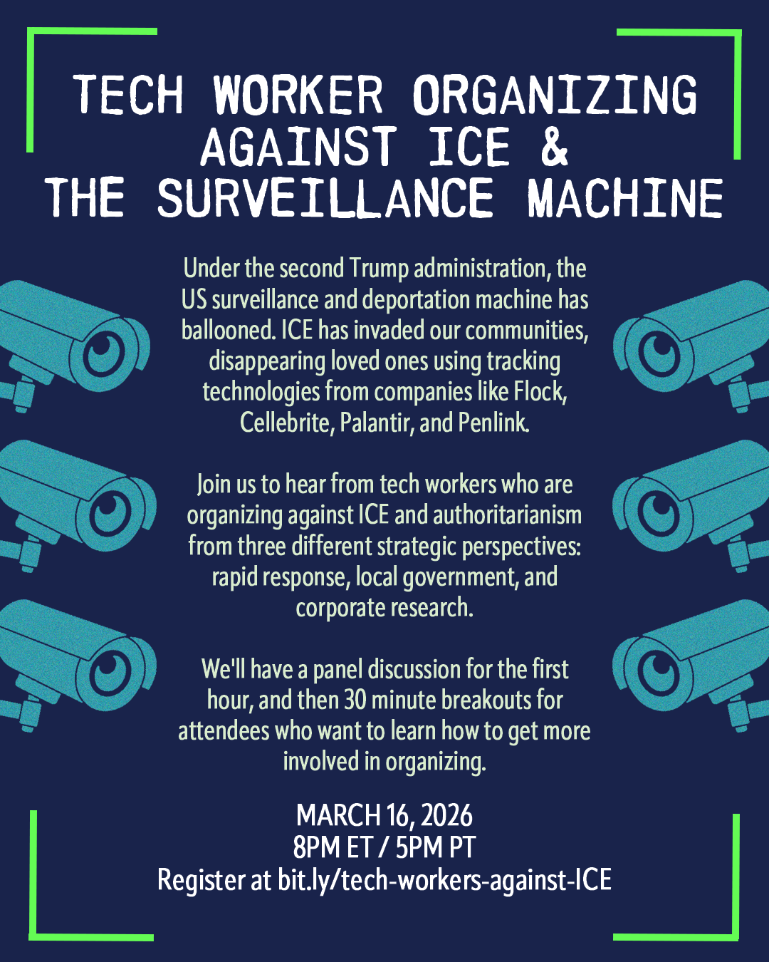 By Gary Levi, Tech Workers Coalition Over the last few weeks, following the murders of Renée Good and Alex Pretti, and in the midst of...